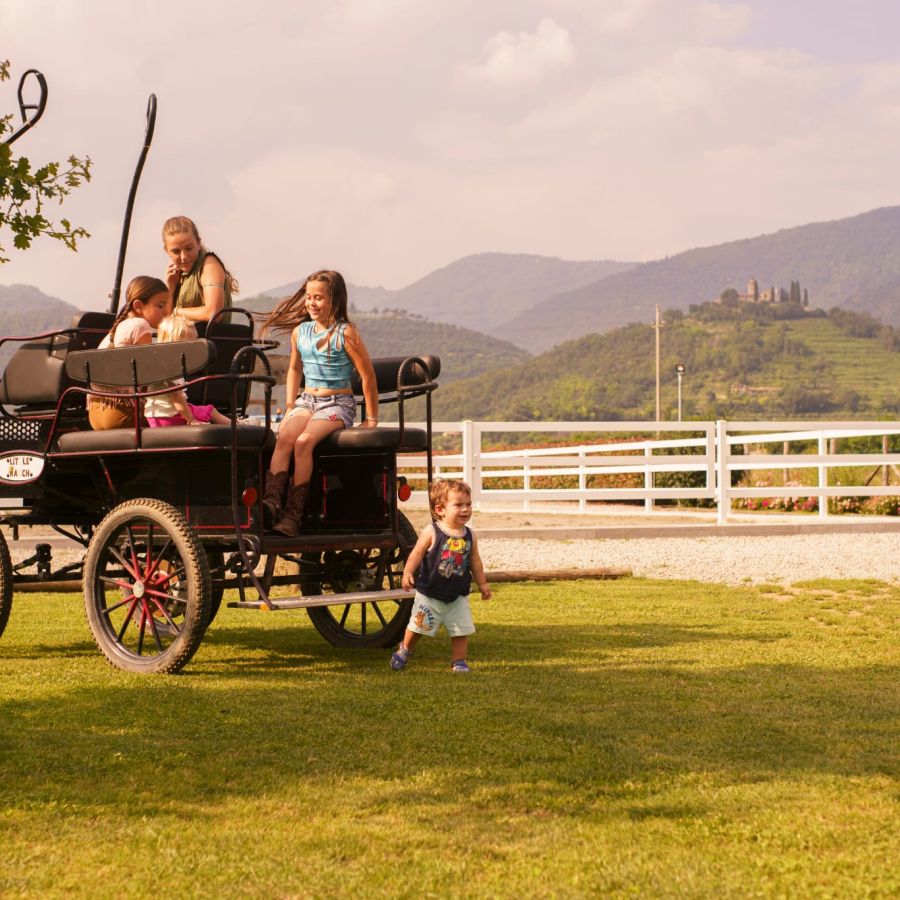 un maneggio con la possibilità di fare lezioni di equitazione, battesimo della sella, giri in carrozza